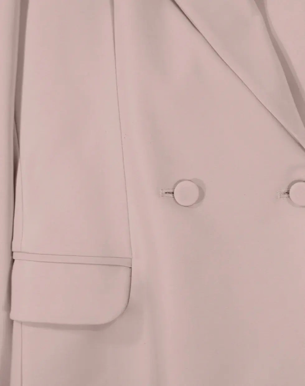 Ce blazer rose poudré sublime la féminité moderne avec délicatesse. Sa teinte poudrée apporte une note de tendresse sophistiquée, tandis que sa coupe impeccable affirme un style assumé et contemporain.