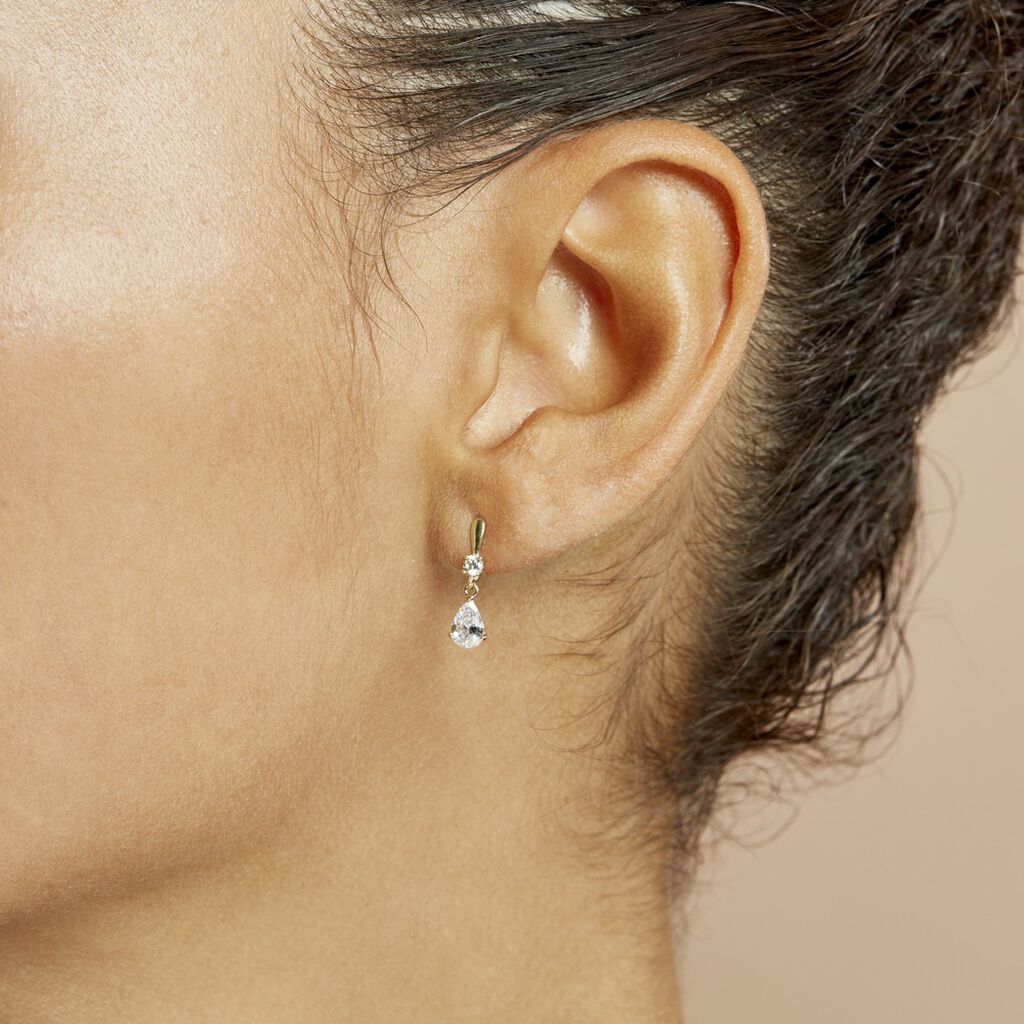 Boucles D'oreilles Pendantes Goutte Or Jaune Oxyde De Zirconium